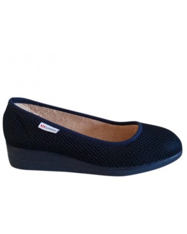 Pantofola estiva Superga S10M618 in morbido tessuto blu scollata con zeppa in gomma naturale altezza 3 cm.