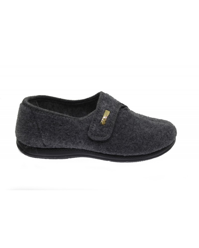 Pantofola Susimoda 6447 linea Sestriere in lana cotta nera con plantare estraibile. Fondo in gomma, chiusura con strappo. Si tratta di un modello molto comodo perchè ha una calzata molto larga e il fondo antiscivolo. Calda, confortevole è facile da togliere e mettere.