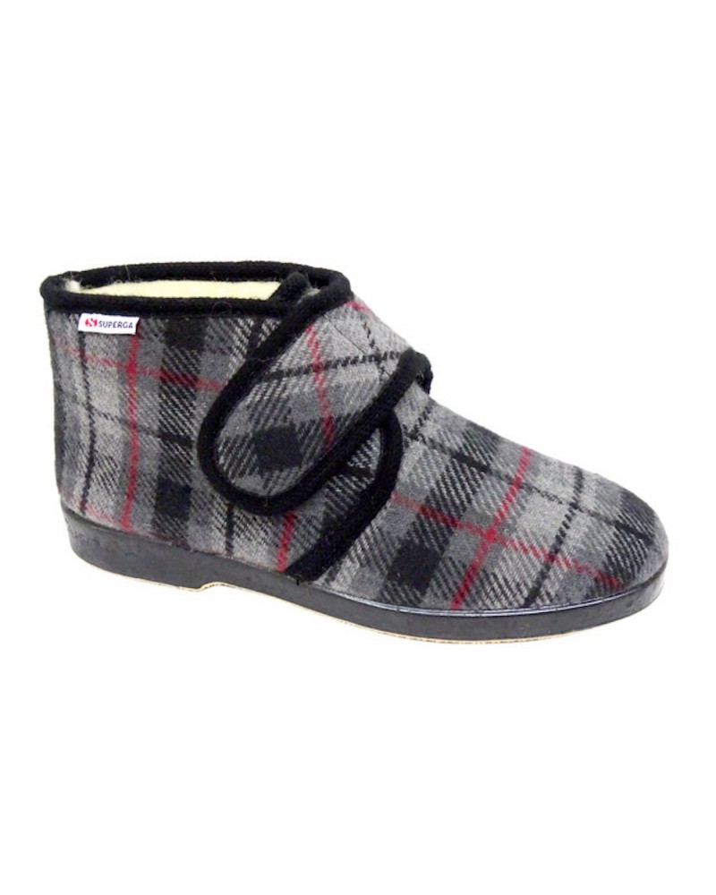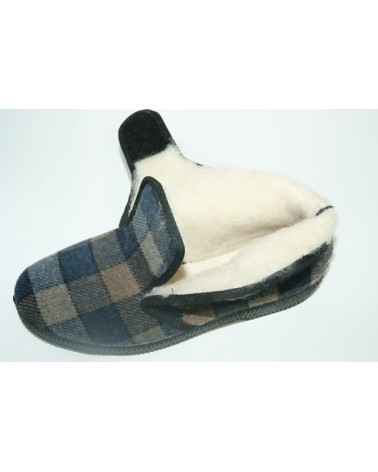 Pantofolone in lana con fodera in pelliccia di lana e chiusura con velcro.