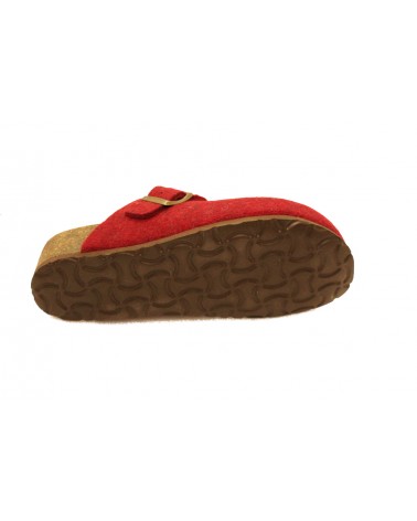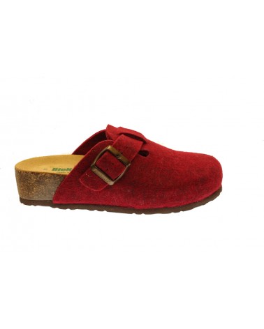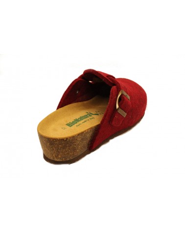 Pantofole Bionatura 12 Vegas in feltro di lana bordeaux con fibbia. Totalmente Made in italy, appoggio anatomico in pelle,zeppa in sughero alta 4 cm, battistrada in gomma