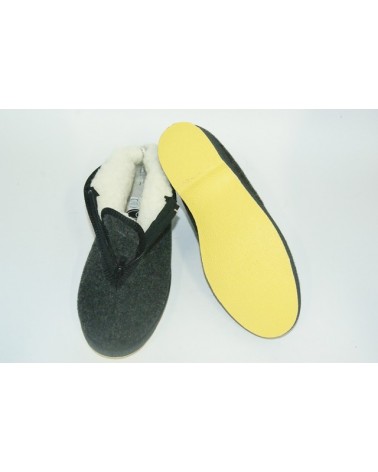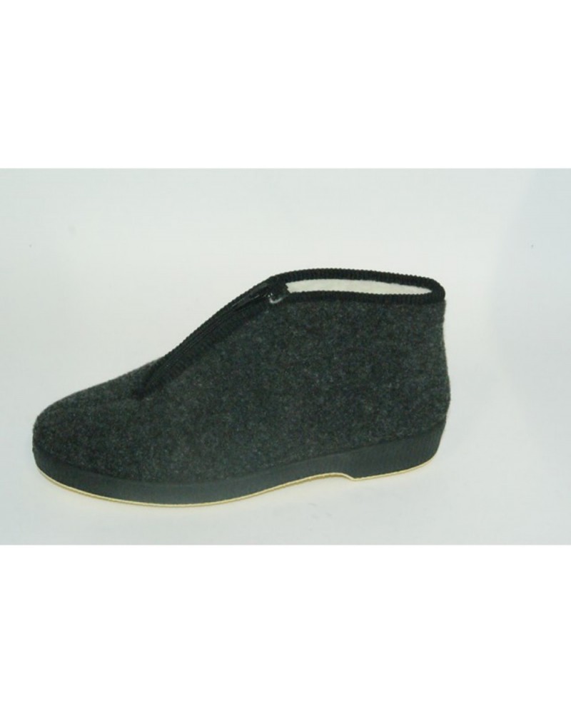 Pantofola con cerniera Ramadoro in panno invernale con fodera in lana chiara, fondo in gomma.