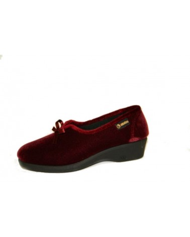 Pantofola Ramadoro in caldo velluto invernale bordeaux con zeppa in gomma alta 3 cm.