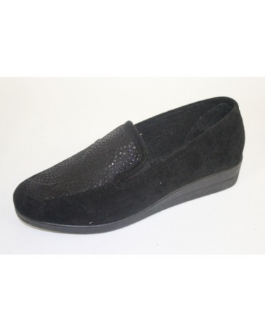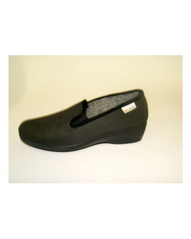 Pantofola Susimoda in caldo panno nero. Zeppa in gomma 3 cm.