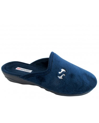Pantofole Superga da donna in panno blu con fodera in velluto caldo. Fondo in gomma altezza cm 3,5