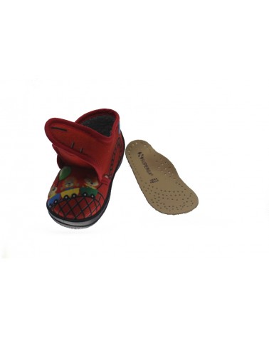 Chiusura a strappo, sottopiede interno estraibile in pelle. Fondo in gomma.