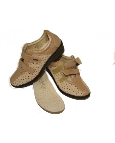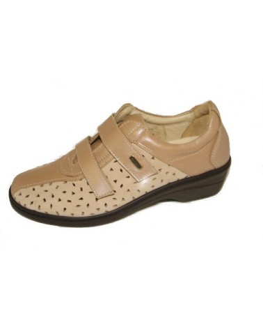 Scarpa Susimoda Walksan 4371 con plantare estraibile realizzata in pelle traforata beige e chiusura regolabile a doppio strappo.Zeppa antiscivolo in gomma alta 3 cm.