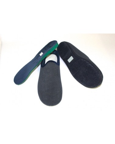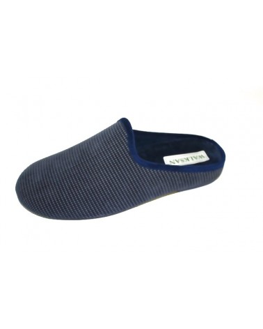 Pantofola uomo Susimoda Walksan 5603 in caldo velluto blu e grigio con sottopiede estraibile. Fondo in gomma. Molto morbida e confortevole.