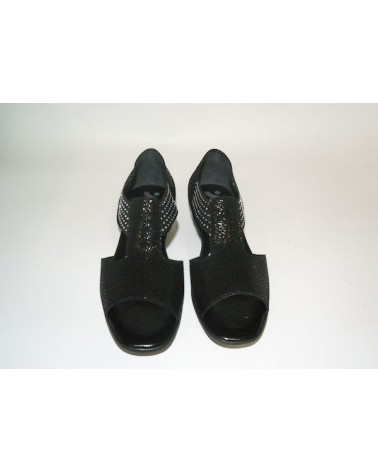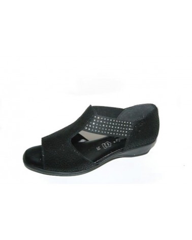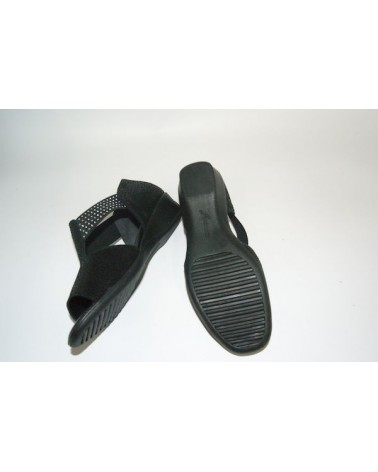 Scarpa sandalo Susimoda in pelle nera con inserto elasticizzato in caviglia. Zeppa in gomma