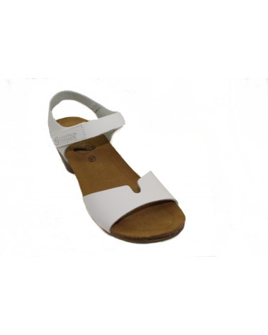 Sandalo Sabatini 2610 in pelle bianca con tacco 4 cm, chiusura con strappo e cinturino in caviglia.