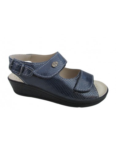 Sandalo Superga in morbida vernice stampata blu molto comodo e regolabile con due strappi e cinturino.