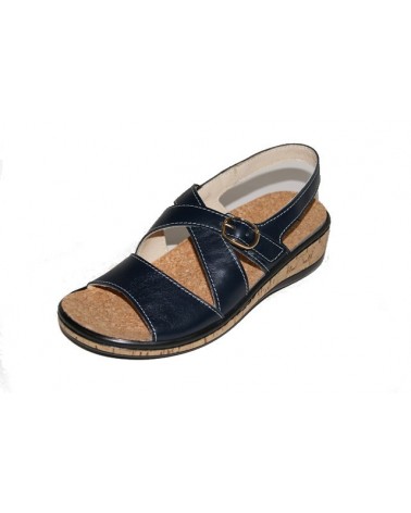 Sandalo Susimoda in pelle blu con plantare estraibile anatomico in sughero.