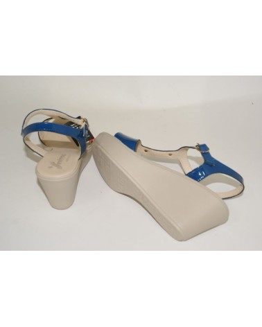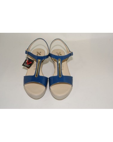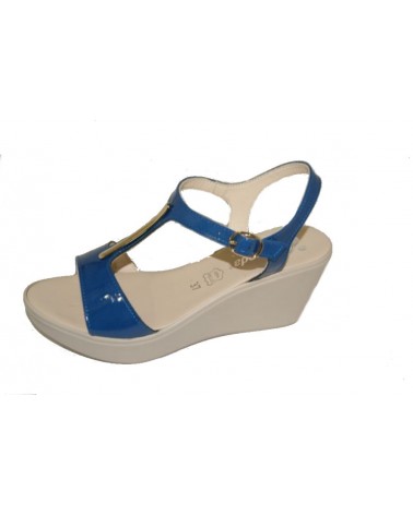 Sandalo Susimoda in vernice color avio con zeppa alta cm 6,5.
