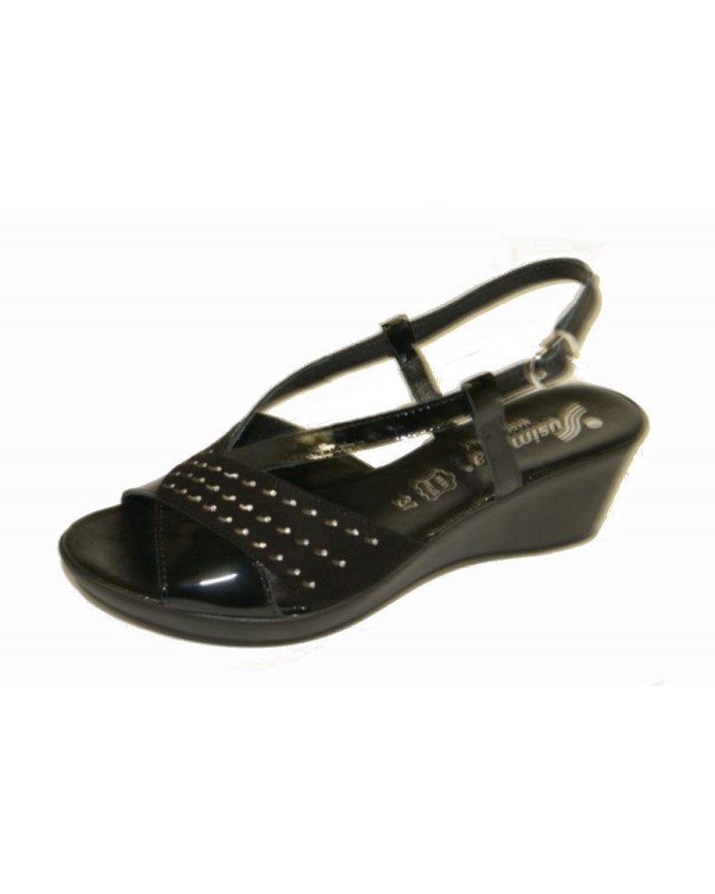 Sandalo Susimoda in vernice e camoscio nero con zeppa