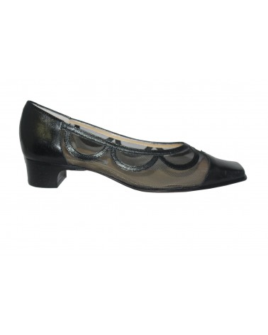 Comodissima scarpa scollata estiva Moda Di Fausto linea Susanna in pelle nera e rete con fondo in cuoio con tacco 3 cm.ULTIME PAIA DISPONIBILI