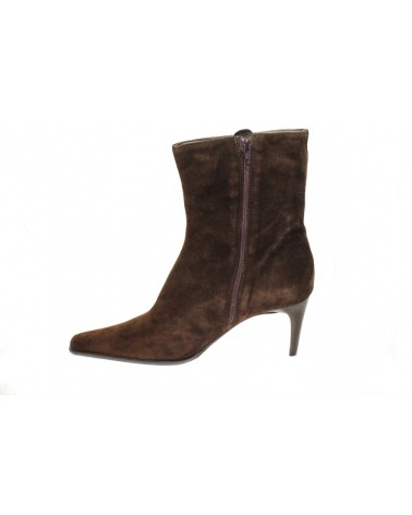 Stivaletto Moda Di Fausto in morbido camoscio marrone. La fodera è in pelle e il tacco è alto 7 cm. Chiusura con cerniera, suola in cuoio e mezza gomma. Prodotto Made in Italy artigianale.