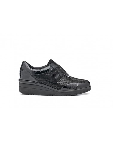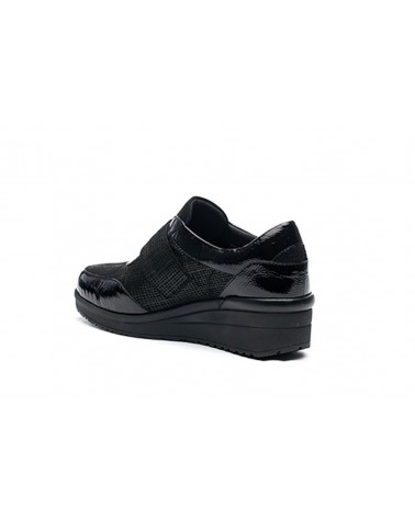 Sneakers da donna Susimoda 8091 in pelle nera con sottopiede estraibile. Chiusura con strappo. Zeppa in gomma 3 cm