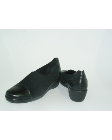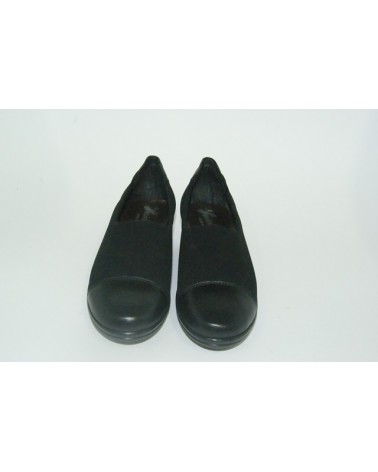 Scarpa Susimoda in tessuto nero elasticizzato invernale con fondo in gomma. Altezza zeppa 4 cm