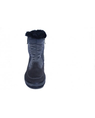 Stivaletto doposci Antarctica in tessuto tecnico grigio antracite e pelle con chiusura con doppia cerniera e imbottitura termica. Fondo antiscivolo. Queste calzature sono foderate con la membrana protettiva originale Klimatex. La struttura meroporosa della membrana ressite alla pioggia e alla neve mentre consente al sudore di evaporare attraverso i micropori a garanzia di piedi asciutti e caldi anche nelle giornate più fredde e umide.