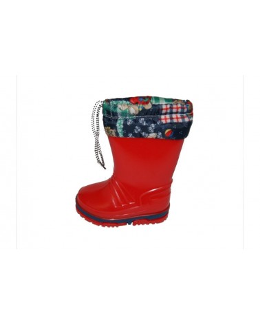 Stivalini in gomma rossi con coulisse. Fodera in tessuto leggero
