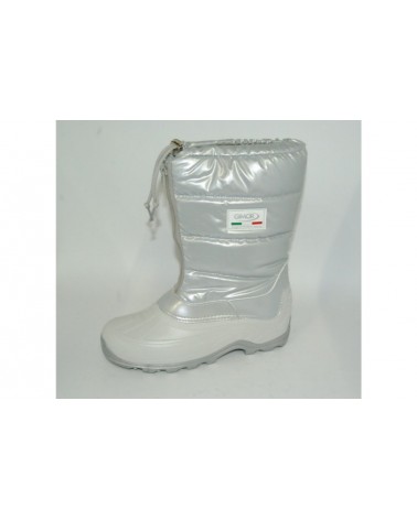 Doposci argento perlato con scarpetta in gomma, fodera imbottita calda. Apertura con cerniera centrale e coulisse. Calzata normale.
